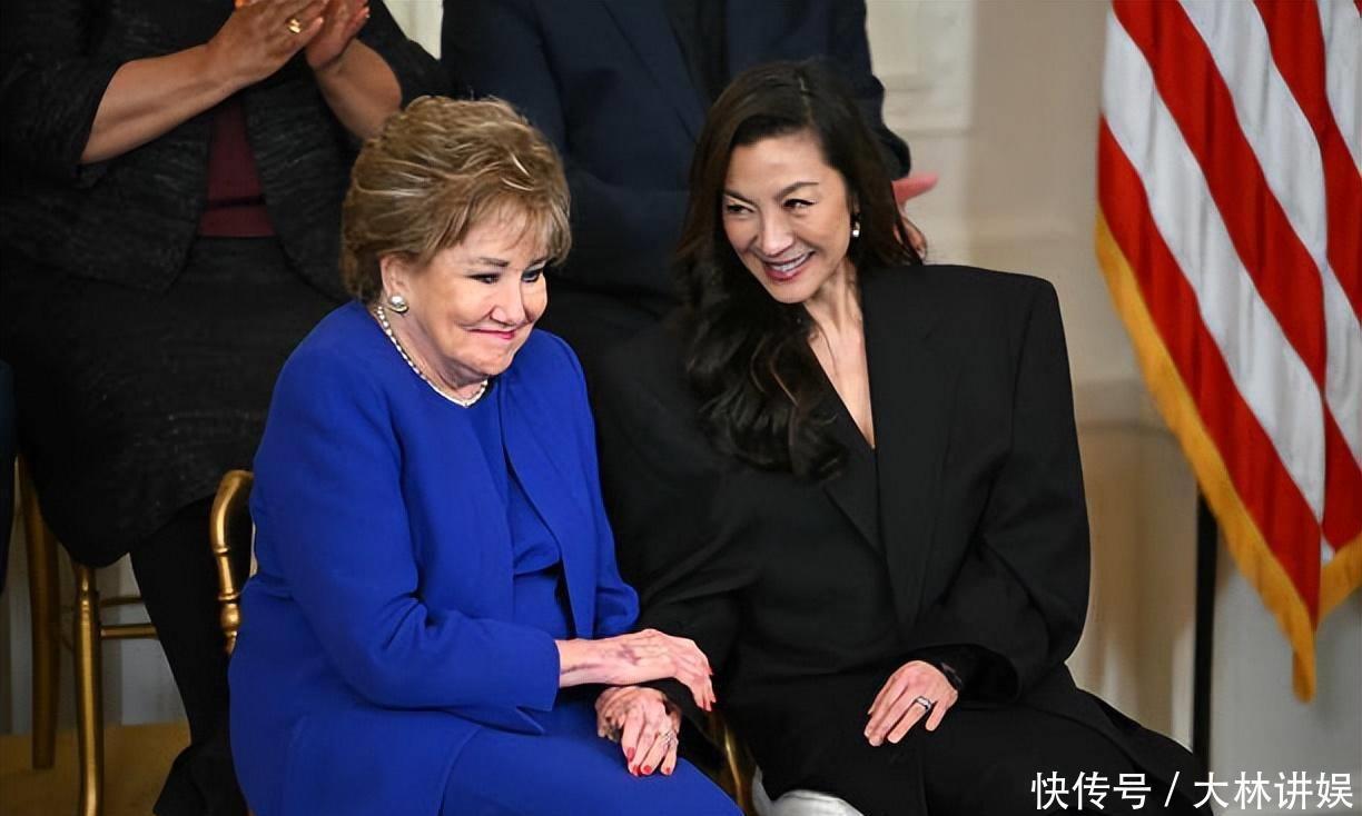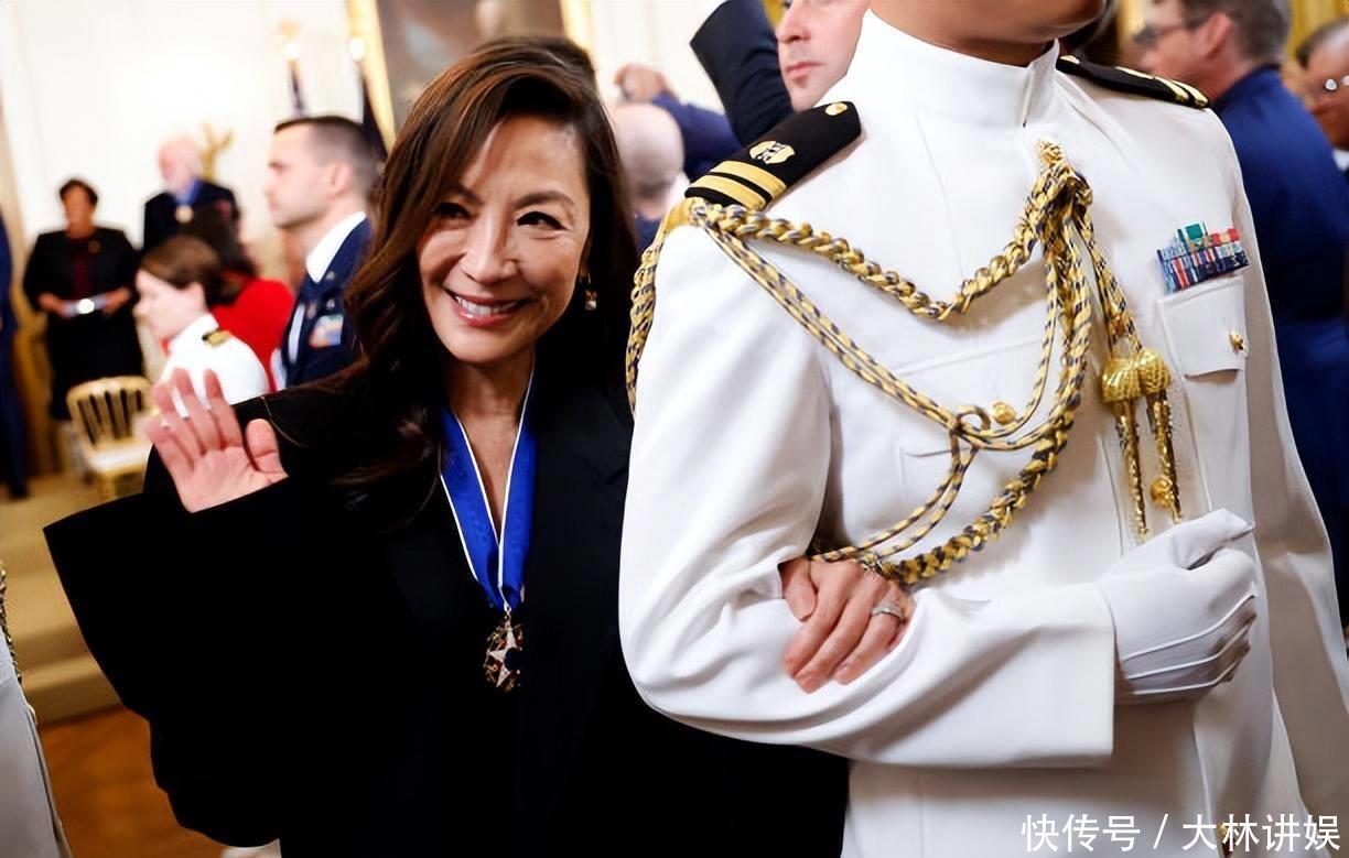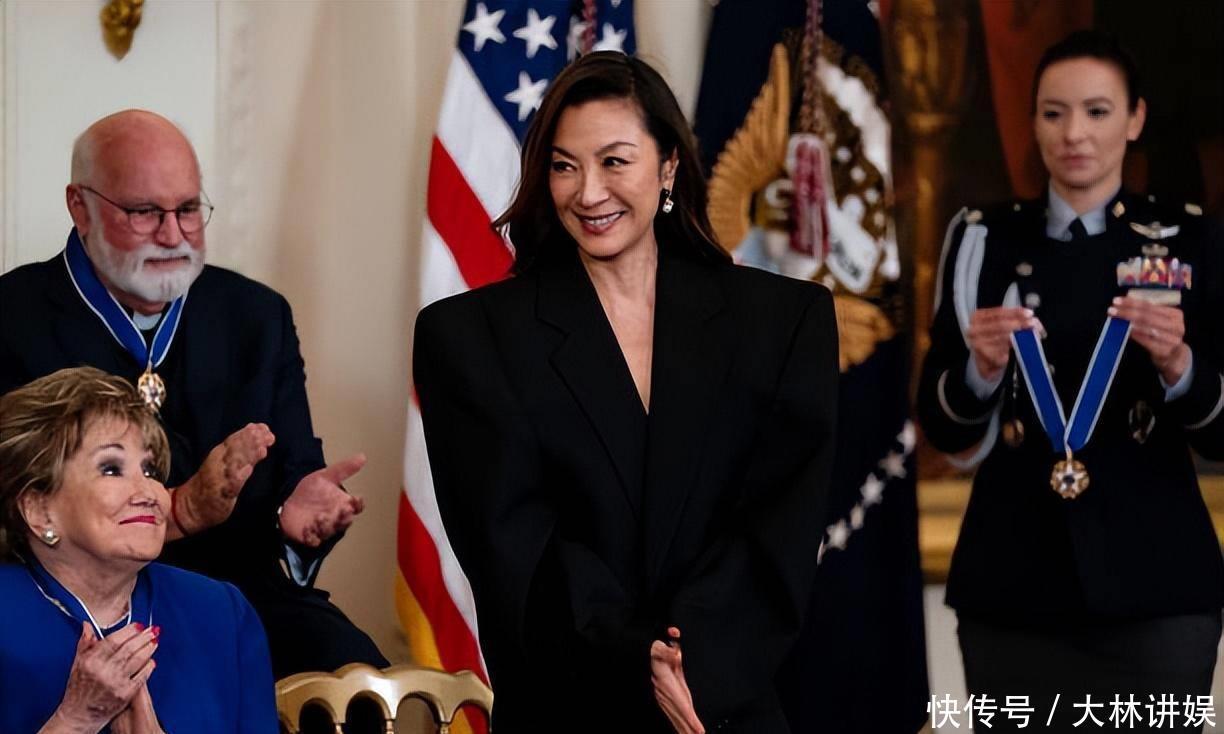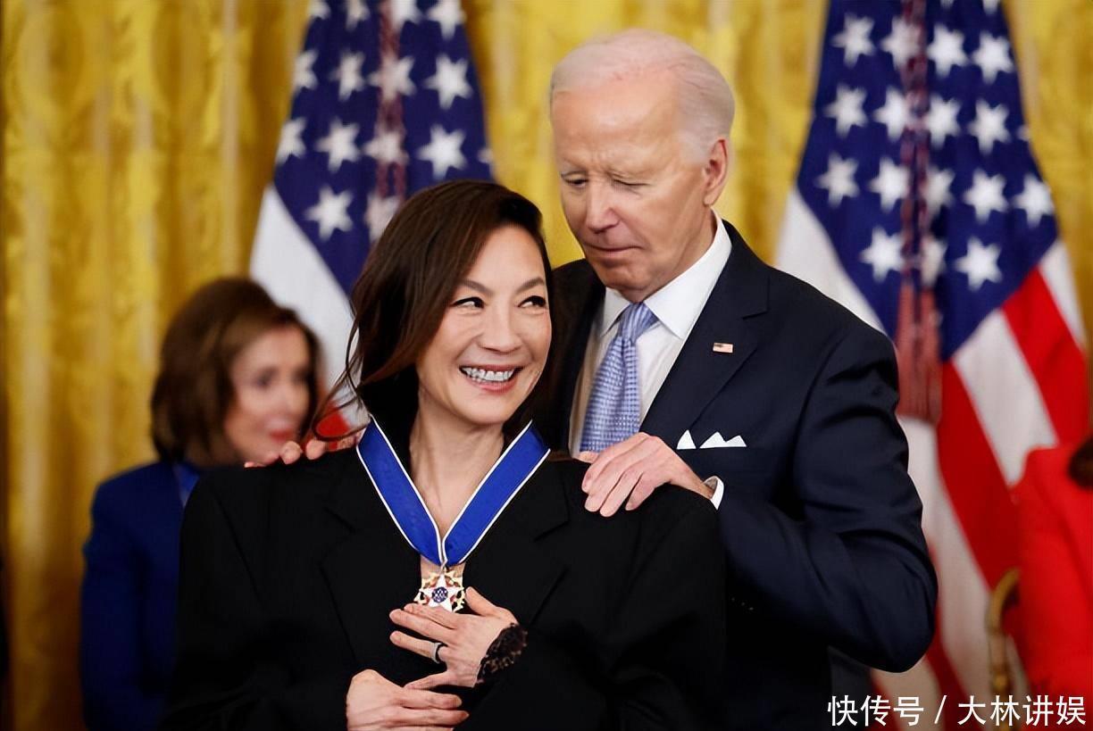 杨紫琼简直格外减龄,少量都看不出来她都仍是61岁了,而拜登躬行给她授奖,为她戴上勋章,杨紫琼的花样变得如斯小女东谈主,日常老是很霸气的杨紫琼,拜登给她授奖的时候,亦然变得敛迹了。