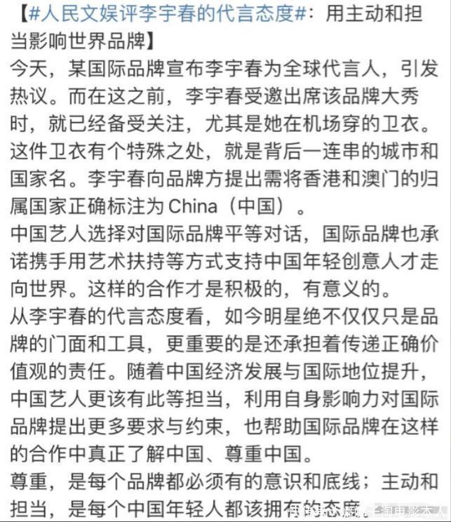 但解放不代表莫得底线,在濒临海外大牌的“大慈大悲”时,李宇春也有保重原则的勇气。