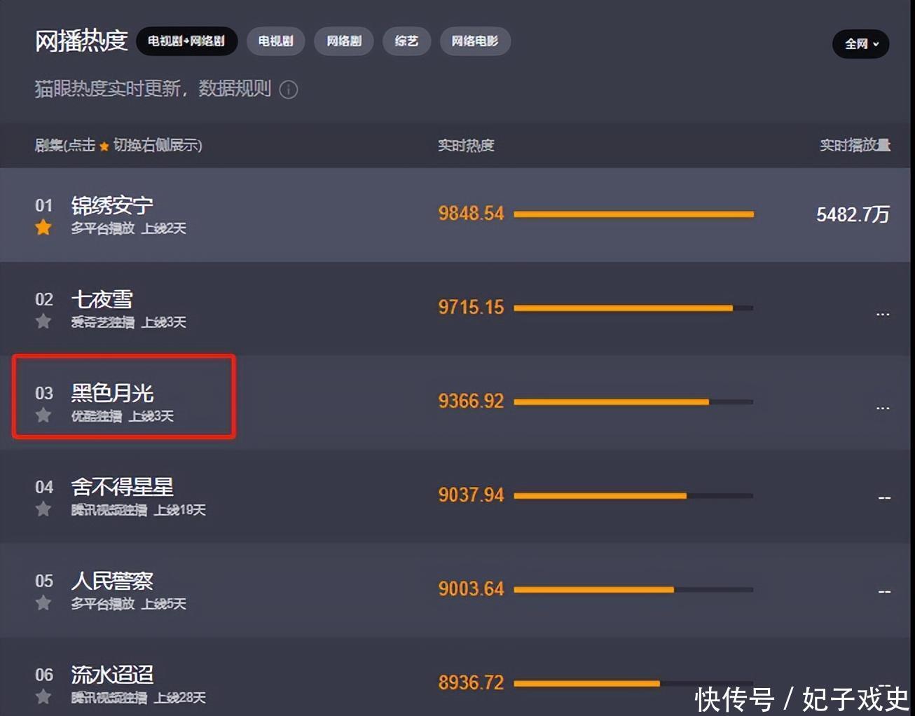 前段时辰,大女主复仇题材的《玄色蟾光》凭着热血病笃的剧情杀出重围,在《再会,意马心猿》、《舍不得星星》等一众小甜剧中脱颖而出,上线几天,热度就飙升至第三。